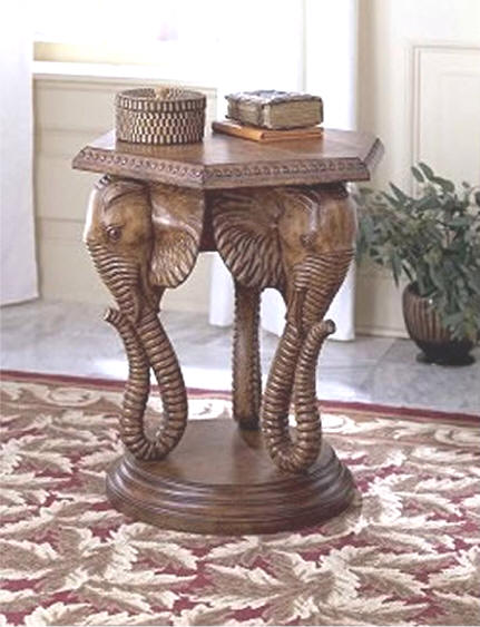 Elephant Table This "Elephant Table" will make a charming addition to any room with a sense of adventure. Tabletop is supported by graceful elephant heads. Resin components. Heritage Finish Height: 26" Width: 24" Depth: 21" Weight: 65 lbs. ITEM: BC-0581070 PRICE: $799.00 |