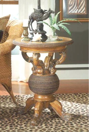 Ornate Abaca Accent Table Ornate hand carved details complete the look of this accent table with abaca rope trim on base and around beveled glass top inset. Made of wood products and resin components. Heritage Finish. Height: 30" Diameter: 28" Weight: 60 lbs. ITEM: BC-0304070 DISCONTINUED |