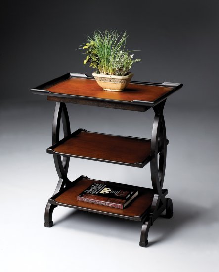 veneers. Cherry veneer shelves and top with raised edges finished with dark